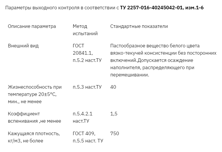 Компоненты пеногерметика смешиваются непосредственно перед применением в определенных соотношениях, указанных в паспорте.