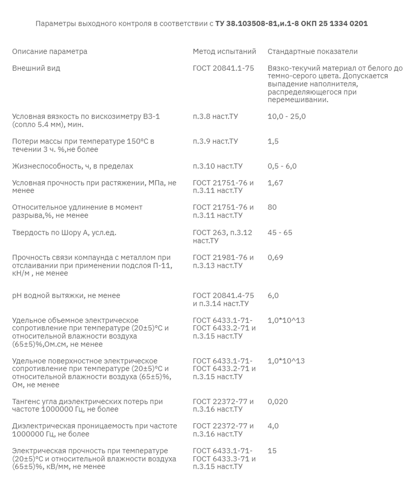 Перед смешиванием с катализатором основу (пасту) рекомендуем хорошо перемешать в течении 5 минут в связи с возможным оседанием наполнителя. Смешивают 100 весовых частей основы (пасты) с 3-6 весовыми частями катализатора №68 (точное соотношение указано в паспорте качества на конкретную партию компаунда!!!!!). Смешение компонентов производят шпателем в сухой и чистой таре в течении 3-5 минут до получения однородной массы. Готовая смесь компонентов достаточно жидкая, поэтому дополнительное вакуумирование не обязательно. Если есть необходимость вакуумирования, рекомендуется удалять воздух в вакуумной камере с остаточным давлением 5-20 мм рт. ст., при этом смесь будет увеличиваться в объеме в 3-5 раз, а затем оседать. После 1-5 минутного вакуумирования смесь должна быть проверена и, при отсутствии воздушных пузырей, может использоваться далее.