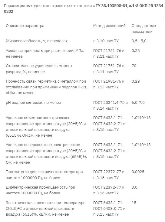 мягкость и эластичность компаунда позволяют применять его для герметизации изделий из ферритов и пермаллоев.