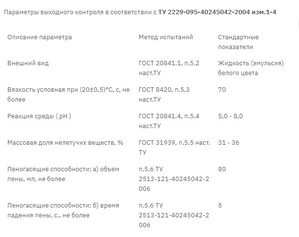20% высокоэффективная силиконовая пеногасящая эмульсия, с повышенным содержанием эмульгаторов.