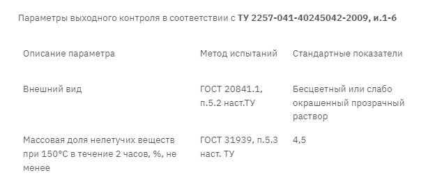 Состав коррозионно неактивен, хорошо растворяется в органических и углеводородных растворителях ароматического ряда.