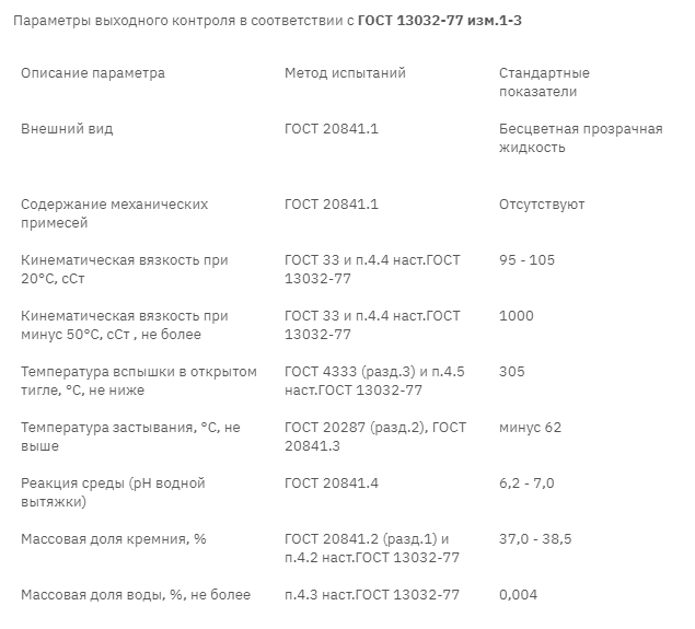 - Силиконовых амортизационных и демпфирующих жидкостей.